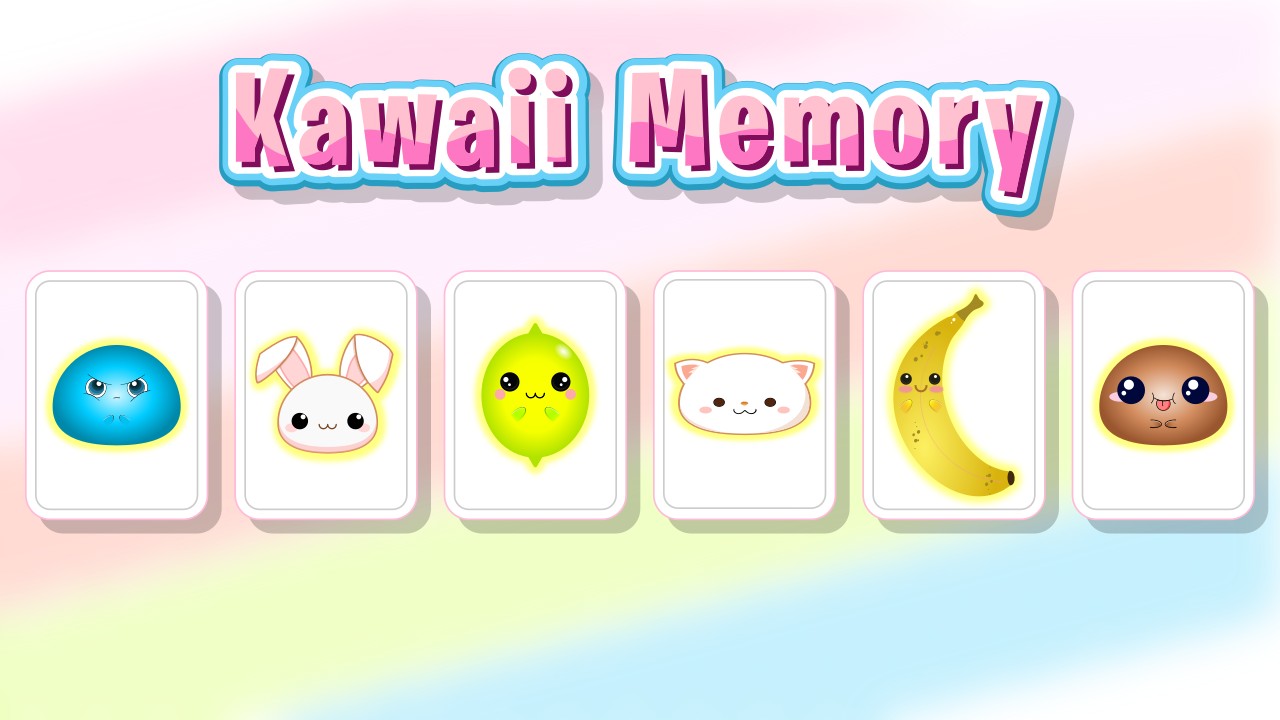 Kawaii Memory is a fun and adorable card matching game where the goal is to find all the pairs of cards. With cute and colorful cards featuring fruits, slimes, and animals. Test your memory and concentration as you match each card with its identical partner. Challenge yourself and improve your cognitive skills as you progress through the different levels of difficulty. Kawaii Memory is perfect for all ages and is a great way to pass the time while enjoying the cute and fun visuals.